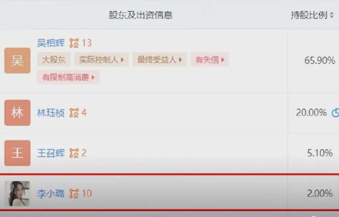 而李小璐的前夫,贾乃亮之前也有这家公司的股份,但 2022 年的时候贾乃亮就退股了。按理说,李小璐作为公司一个只持有 2% 的股东,对公司没有任何的决策权和控制权,甚至就连公司的法人和老板也都不是她,但公司一出事,很多网友立刻就将李小璐骂上了热搜,甚至因为李小璐对这件事的疑似回应更不满,称:" 不会好好打汉字?"