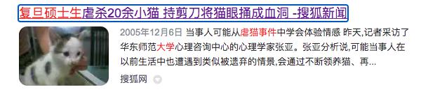 18 年前,复旦大学研究生张某因虐猫备受批判,其父亲就曾表达过这样的不解: