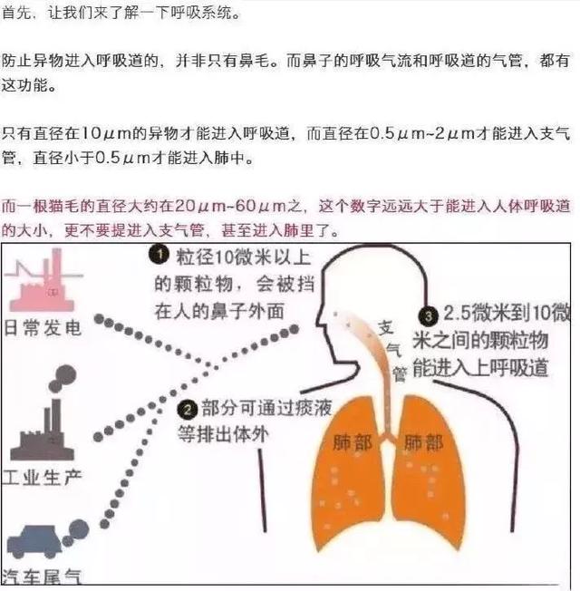 因为猫毛的直径,远大于能进入人体呼吸道的大小!