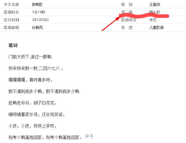 据资料显示,胡小环是中国著名的作曲家,代表作品除《数鸭子》外,还有《鼓山》《今生欠你一个拥抱》《心若无疆爱也无疆》 等歌曲。
