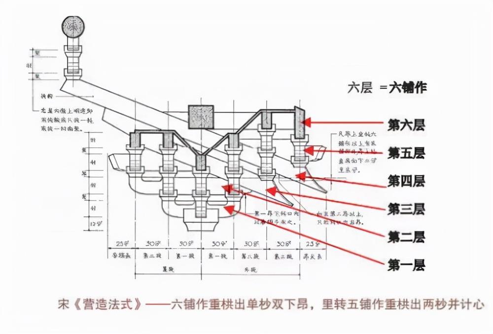 卷四、五大木作制度;包括建筑模数、梁架结构、屋顶各构件、斗栱等各结构构件制度。