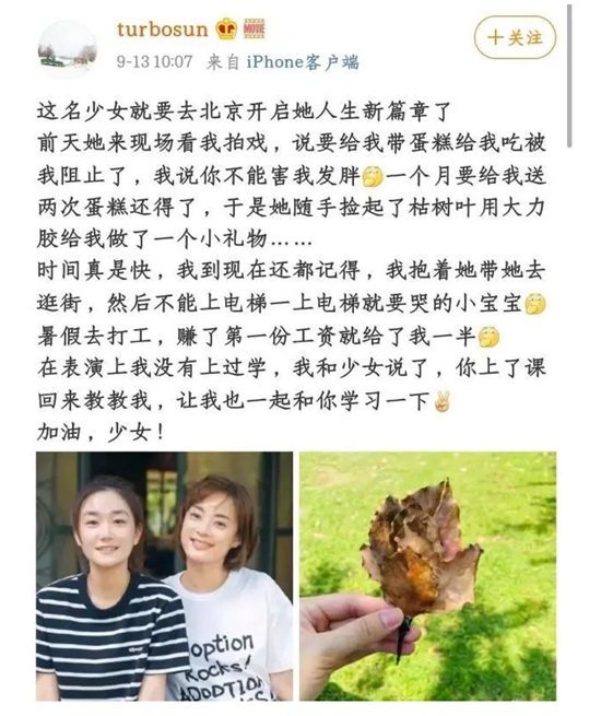甚至后来孙艳考取北电,孙俪同样不惜笔墨的发博庆祝,唯恐大家不知道。还经常发布同框照片,不时为妹妹刷刷人气。