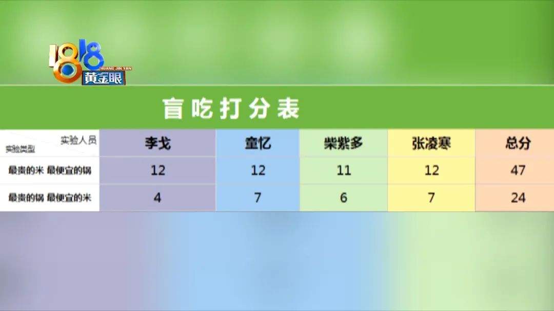 主持人 李戈:“吃了四十多年的米饭,还有这种去评分,很新奇。口感没有那种软糯,爽滑,它的色泽看上去没有刚才这碗光滑、润滑,还有就是它的香气不浓,有米香,没异味,但是香气不够浓郁。”