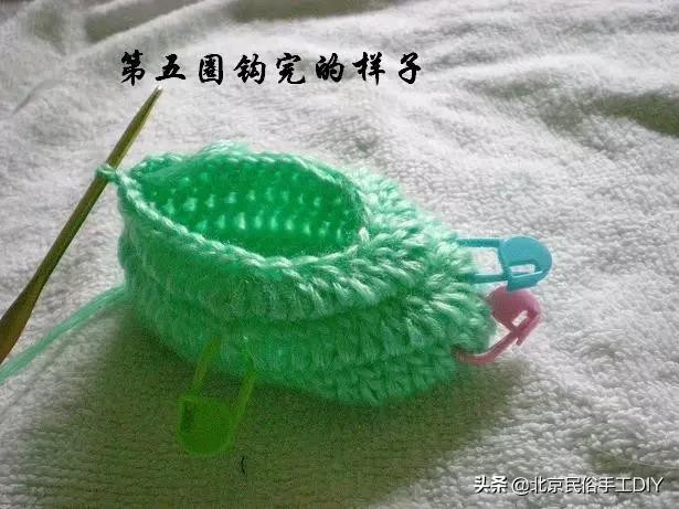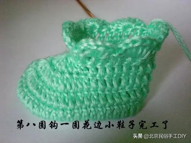 这样一双简单漂亮的婴儿鞋就完成了,妈妈们还在等什么一起来动手吧~
