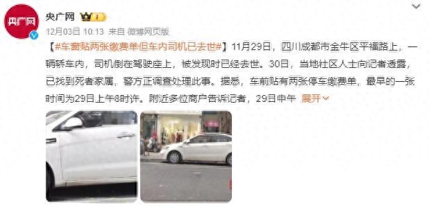 车窗贴两张缴费单 车内司机已去世:路人发现异样后报警