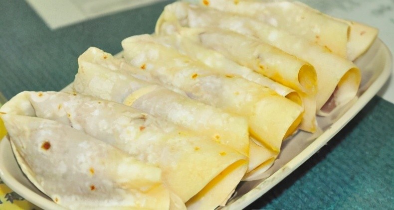 又称夹心面。相传古代晋中有位婆婆在家务活上经常给儿媳妇出一些伤脑筋的“难题”。一天,她让儿媳用白面和豆面擀面条,条件是不能将两种面事先和匀,而在吃的时候要有均匀感。这位聪明的媳妇并没有被婆婆的题目所难倒,做成了两种面粉组成的包皮面。包皮面的做法:先将豆面和白面按1∶1的比例准备好,用温水将白面和豆面分别和好。然后将豆面团揉成球状,白面团擀成饼状。最后用饼状的白面把球状的豆面包住,擀成面条即可。食用时用芫荽(香菜)酸汤、葱丝辣调最佳。