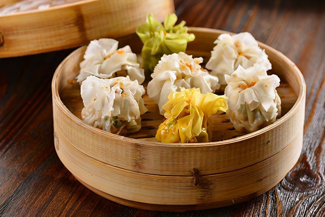 烧麦是一种以死面为皮裹馅上笼蒸熟的面食小吃。明代,作为九边重镇之首的大同,烧麦制作就格外有名。品种花样繁多,计有菜叶烧麦、水晶烧麦、翡翠烧麦、金丝虾烧麦等,但只属凤临阁百花烧麦最为上佳。