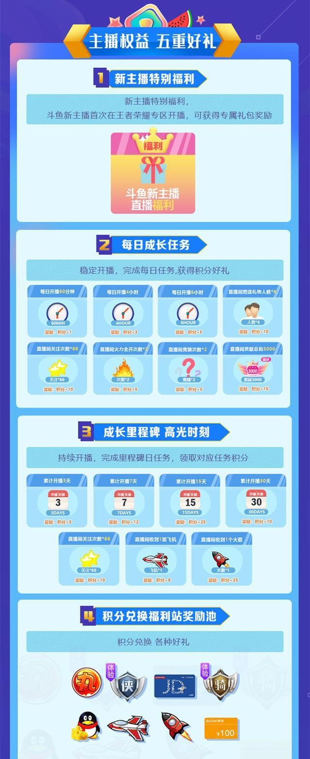 斗鱼为了"C位出道"活动,也推出了比较多的福利。新人主播在斗鱼王者专区首次开播,能够获得专属福利。但其实最重要的,还是通过每日成长任务以及成长里程碑任务来获取积分了。积分是一个好东西,不仅可以兑换QB、JD卡、斗鱼直播间道具等福利。而且官方也会根据积分进行排名,排名靠前的主播,也会获得斗鱼的签约机会、特级流量扶持以及专属定制直播间。相信在斗鱼的大力培养之下,有能力者也会从活动中脱颖而出,成为炙手可热的王者大主播。