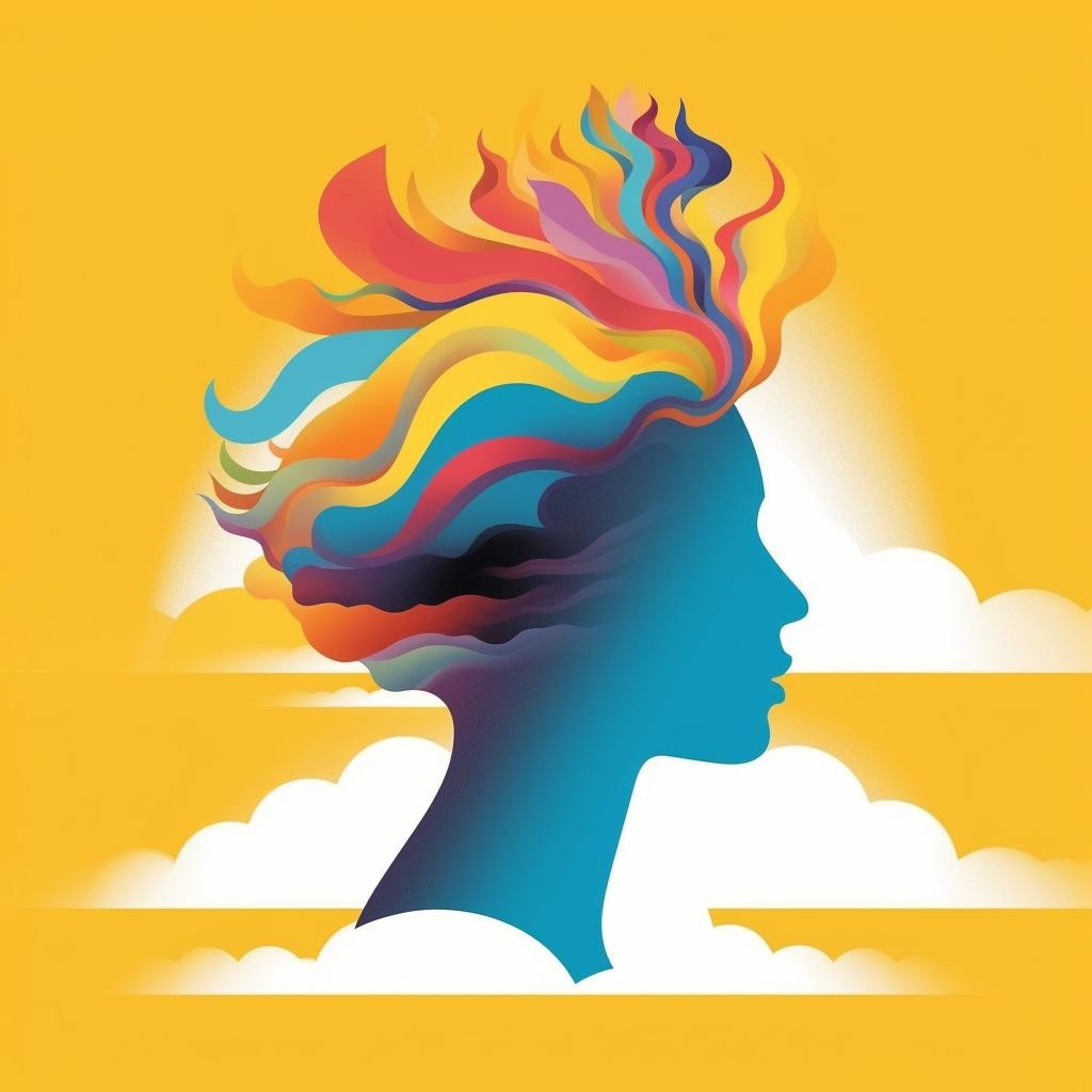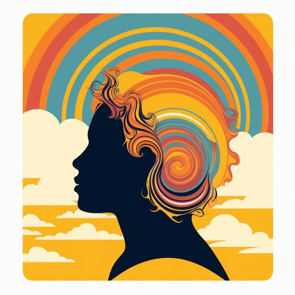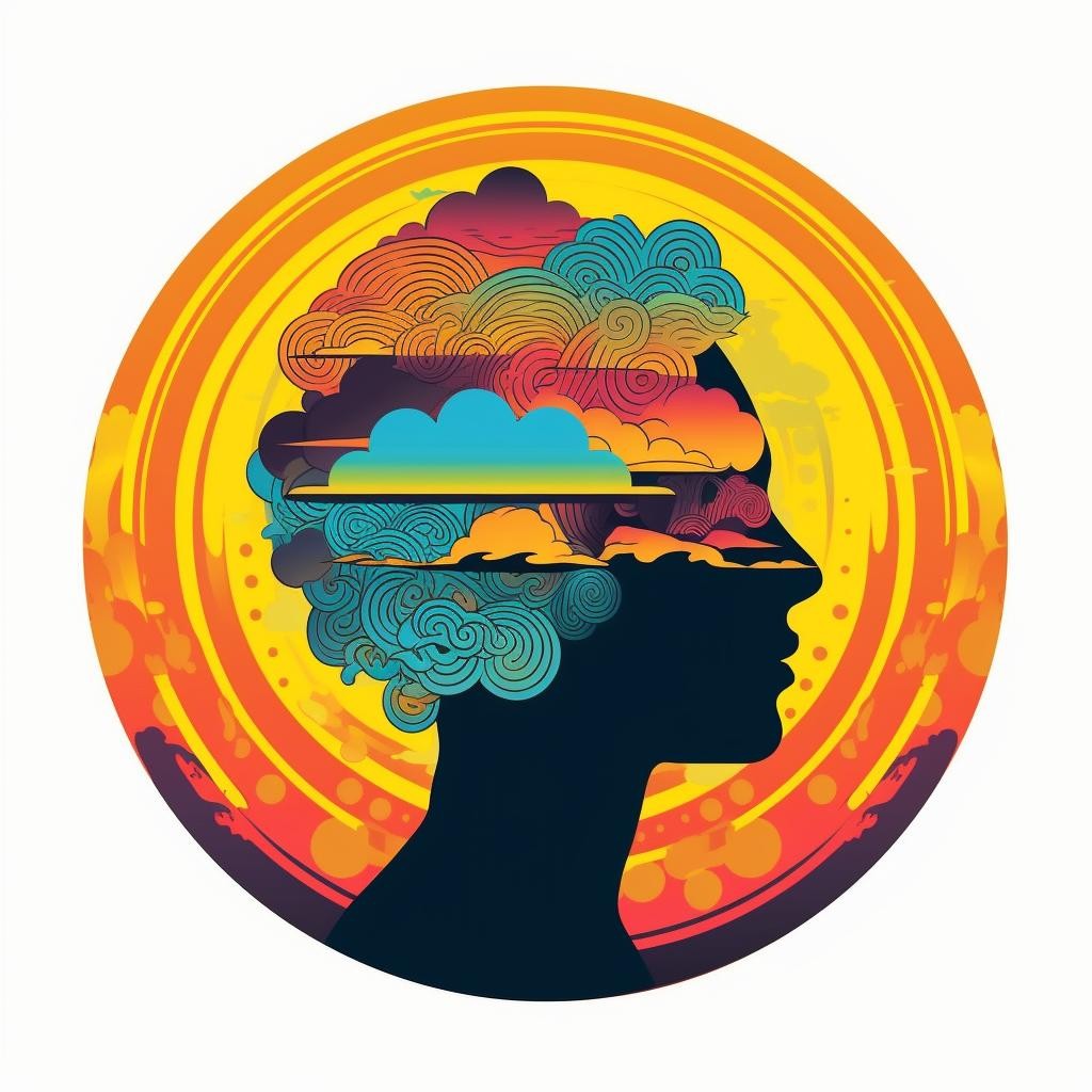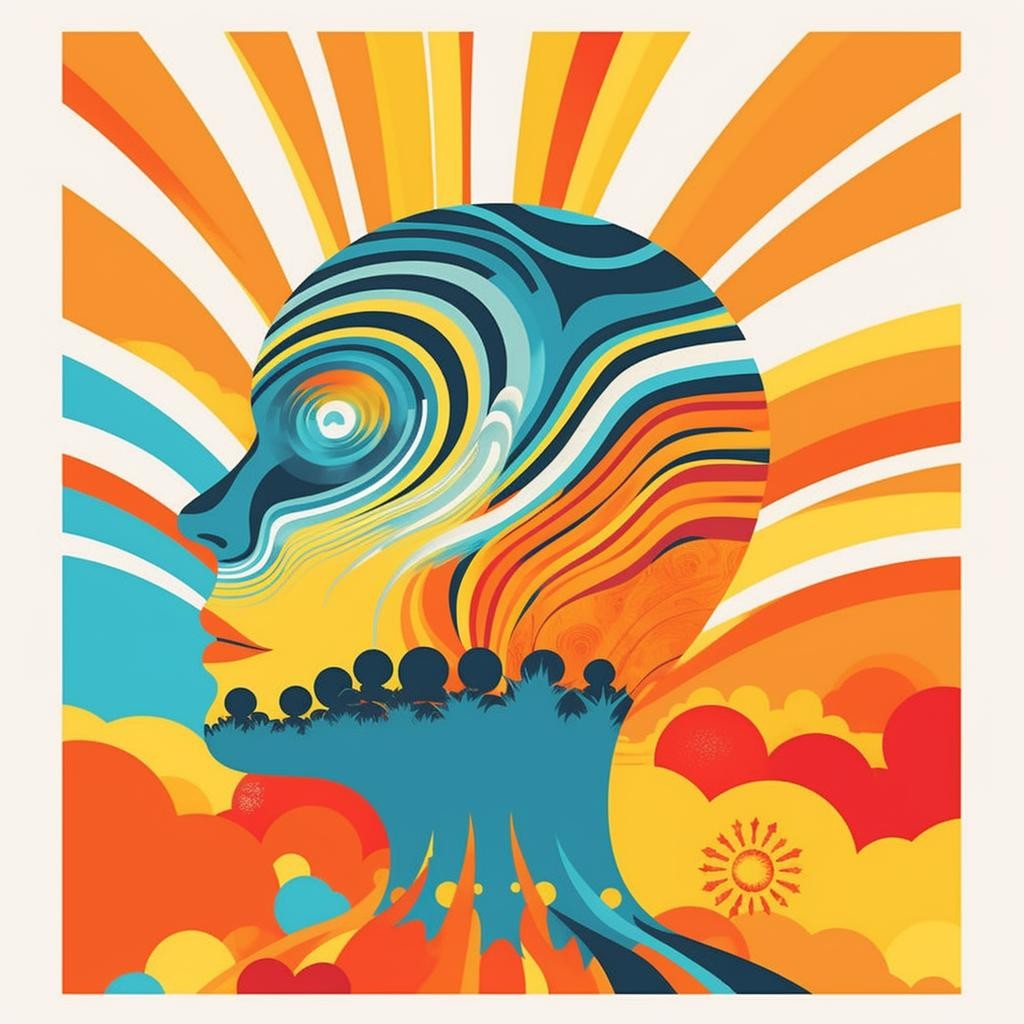 采用的造型元素:人像剪影、朝霞、彩虹、云朵