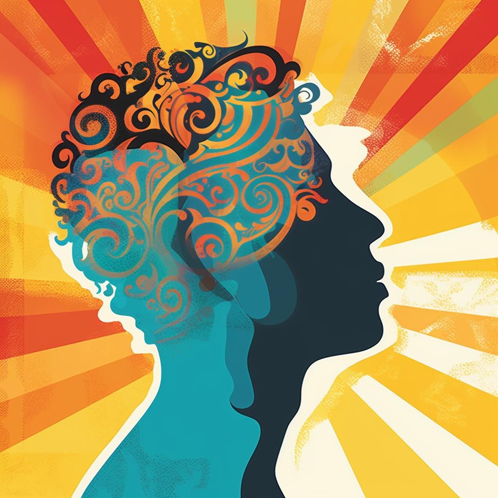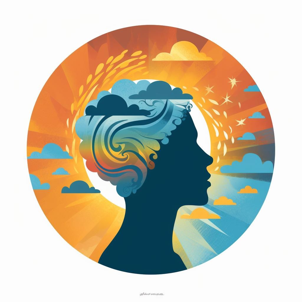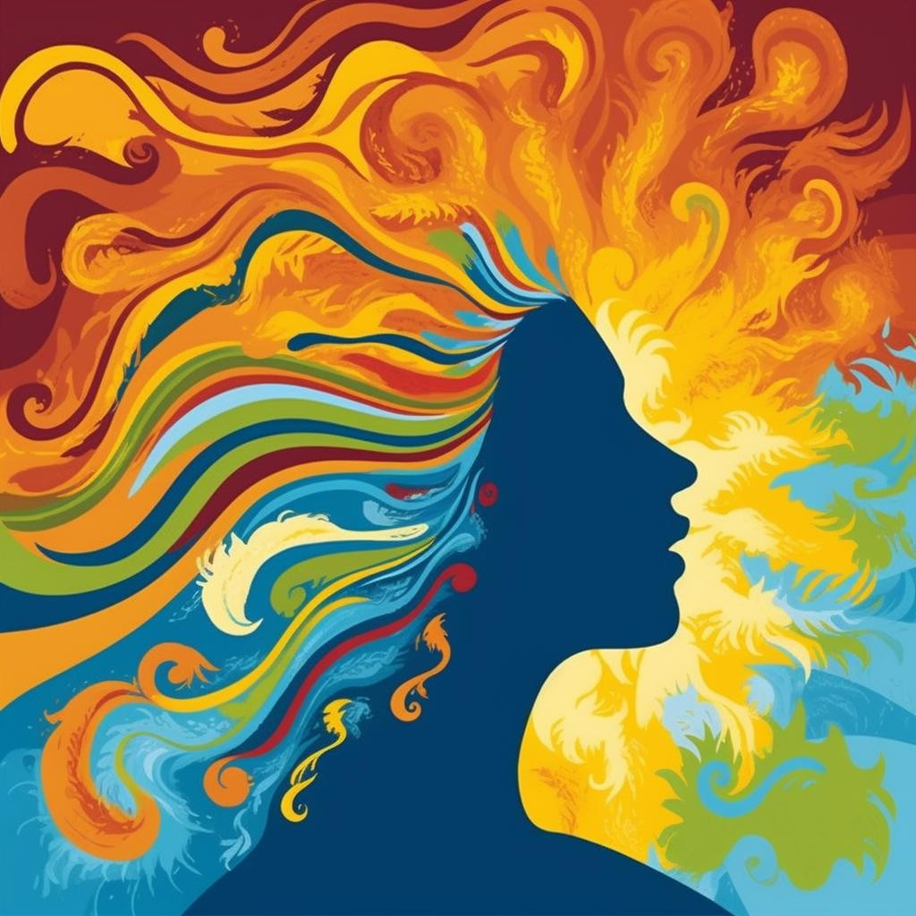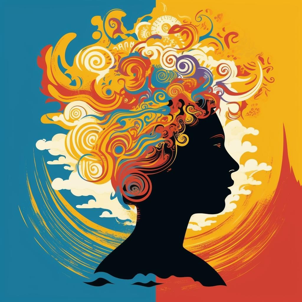 采用的造型元素:人像剪影、朝霞、彩虹、云朵