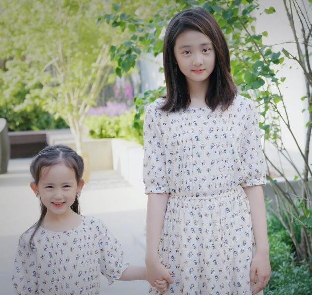 夫妻两人身旁站着二女儿黄少艾,转眼间她长大不少,身高快到爸爸胸部。她穿着深色长裙、白色裤袜,短发齐肩,十分乖巧可爱。