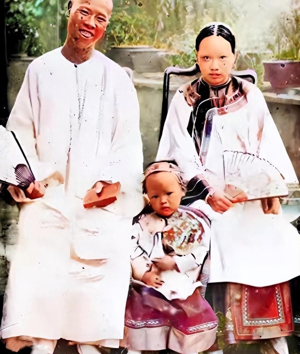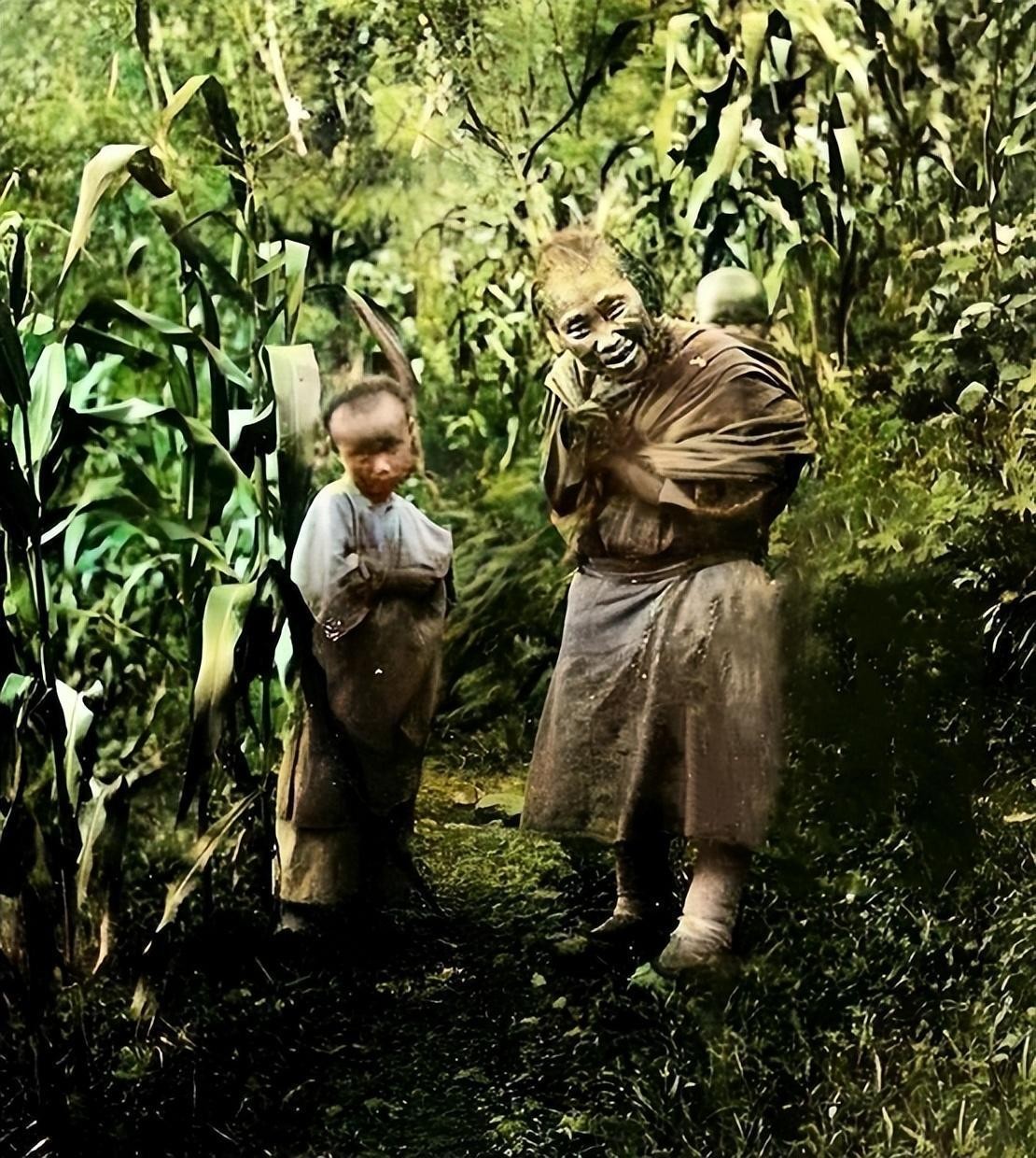 这张照片的拍摄时间不详,但是从小男孩的服饰和发型,大致可以判断出应该是在清朝末年
