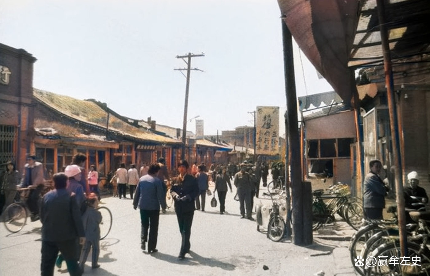 1984年的大同,大西街南侧,钟楼街口的街景。钟楼街是一条繁华老街,街道两旁店铺林立,行人如潮。