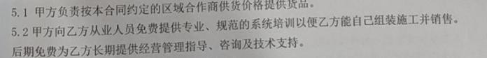 甲方向乙方从业人员免费提供专业、规范的系统培训以便乙方能自己组装施工并销售。