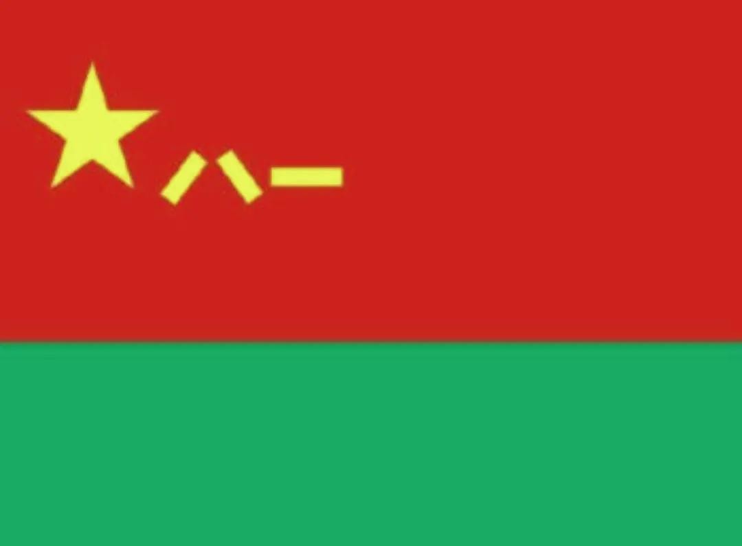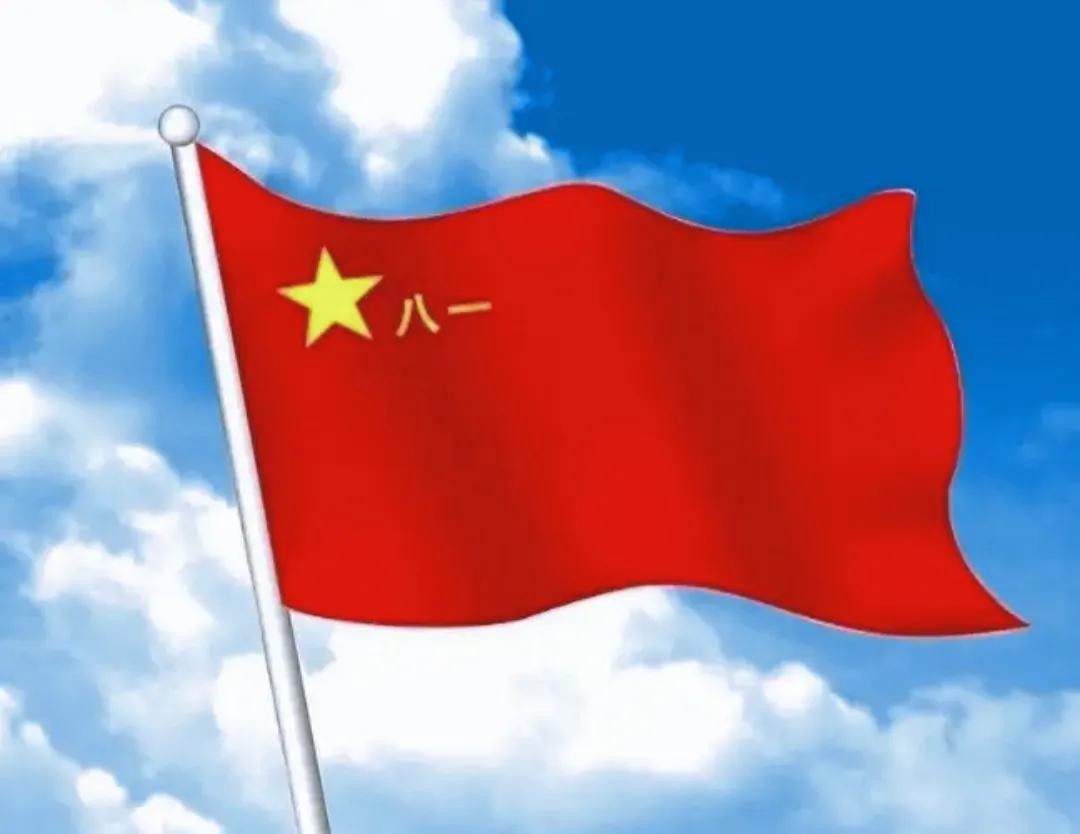 5. 解放军军旗:中国人民解放军军旗是代表中国军队的旗帜,红底金边,中间有一个黄色的五角星。五角星内部有一个白色的八一军徽,代表着中国人民解放军的成立日期是1927年8月1日。