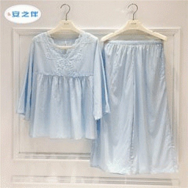 安之伴宫廷睡衣女夏七分袖薄款纯棉2019春季蕾丝公主风家居服女人
