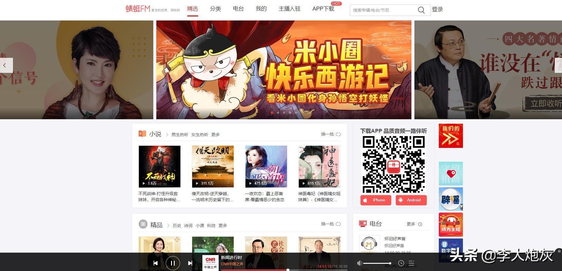 蜻蜓FM,提供丰富的有声读物、有声小说和广播电台节目,内容覆盖文化、财经、科技、音乐、有声书等多种类型。