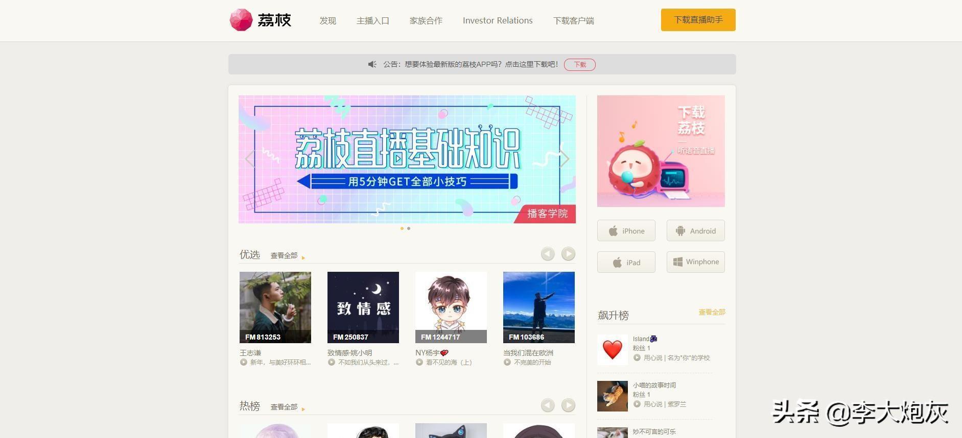 荔枝是音频分享平台,汇集了听音乐、英语、睡前故事、儿童故事、有声小说、相声段子、历史人文等。
