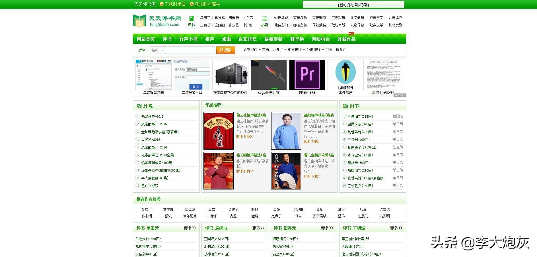 天天评书,提供各种各样的经典评书、流行的有声小说和相声,提供在线收听和下载等服务。