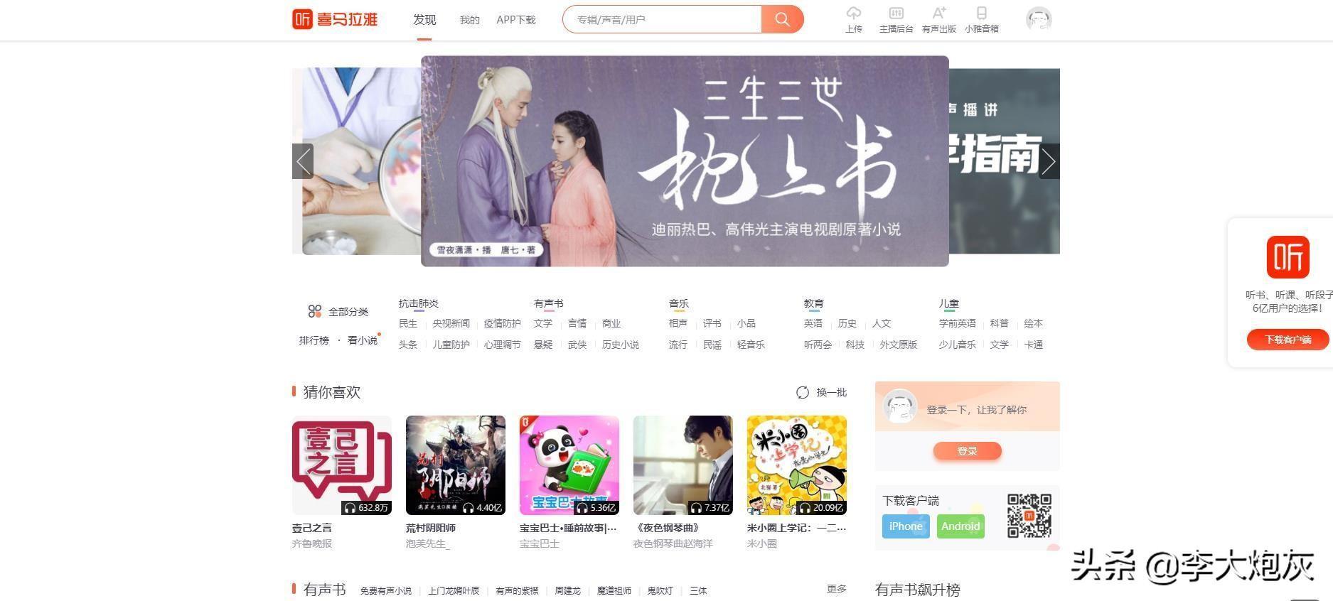 喜马拉雅,提供电视电台节目、音乐mp3、有声小说、英语、相声、评书,还是财经股票、教育培训、健康养生、社科人文、儿童故事音频分享服务。