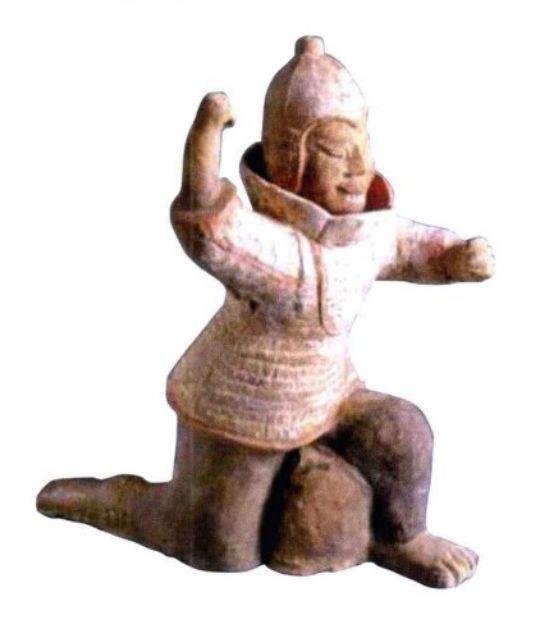 ▲魏晋时期的兵俑,身上的铠甲形制就是”铁盆领“。
