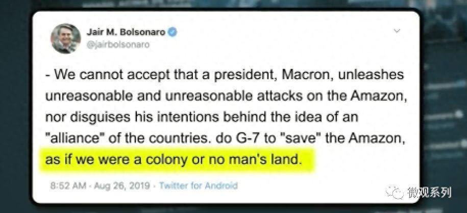 他抨击马克龙根本就是“殖民心态作祟”,马克龙不希望巴西好,只希望巴西继续像过去一样,乖乖做一个殖民地