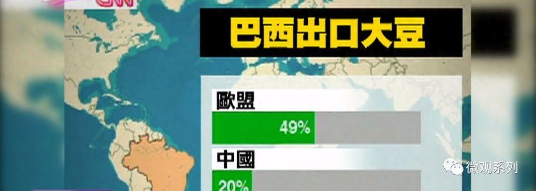 过去从巴西出口的大豆,49%卖给了欧盟,20%卖给了中国