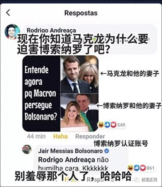 更夸张的是“博索纳罗”还亲自跑去下面点赞和评论了