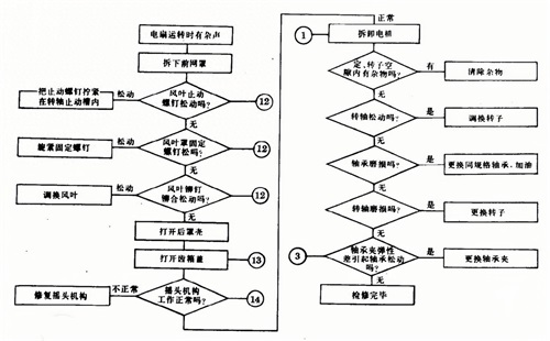 维修方法:在排除该故障时,若需更换轴承,则应取合格的E级轴承。具体步骤可按下列流程图来进行。