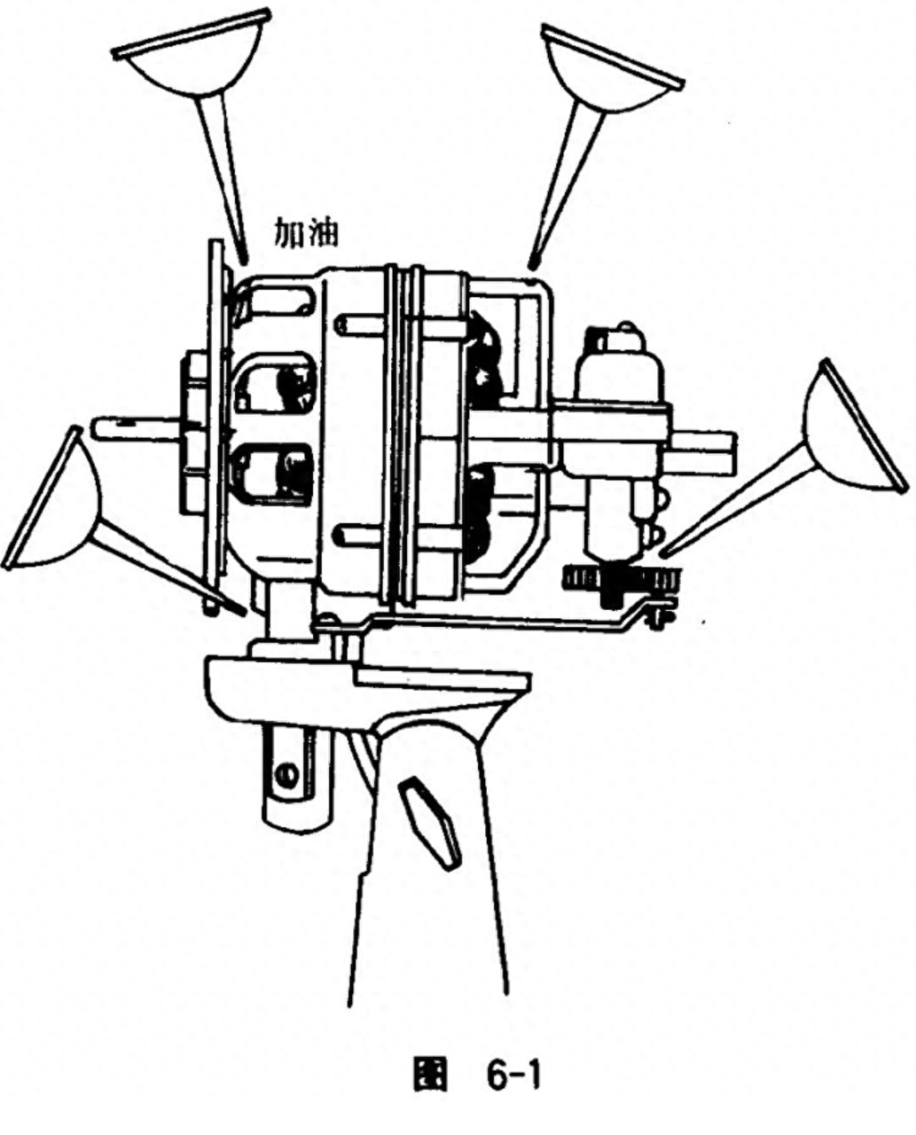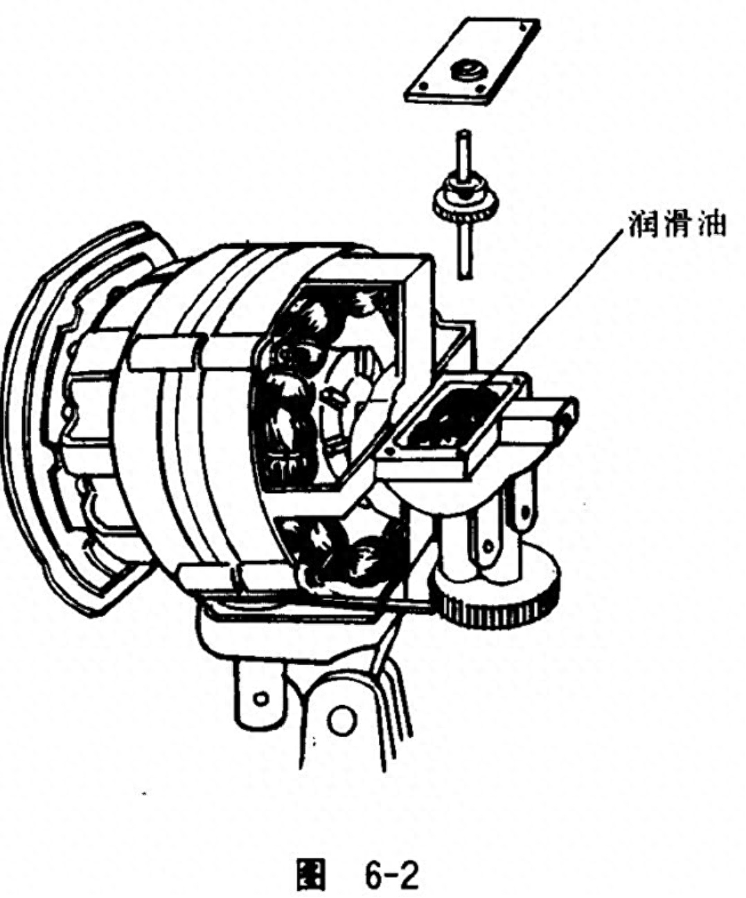 使用2-3年后,应该检查一下摇头机构齿轮箱内的润滑油脂,若发现已变质或已硬化,则应加以调换。新换上去的油脂必须为清洁油脂的润滑脂。如图所示。