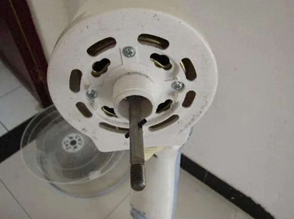 故障现象及分析:插上电风扇电源插头,按下电风扇档位开关,耳朵贴近电风扇电机部位听见嗡嗡的声音,并发现电风扇扇叶轻微动了一下但不工作,若有这种故障现象,我们可以初步判断故障出现在电风扇扇头的部位,即电风扇电机轴座抱紧,电机运转电容容量减少等原因引起。判断完毕后应立即关掉电扇开关,或者是直接拔掉电风扇电源插头,以免烧坏电扇电机。