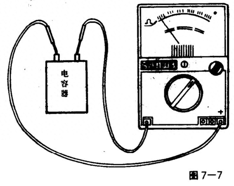 将电容器上的接头烫去一根,用万用表取电阻档RX10或RX100测其充放电情况:1.若指针偏转后能逐步回到起始点,则表示正常;2.若倘转后不能再回到起始点,则表明该电容泄漏严重;3,若指针无任何偏转,则表明该电容器已无电容量;4.若指针迅速偏转至0,则表明该电容器内部已短路。