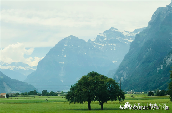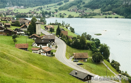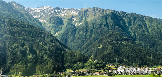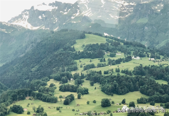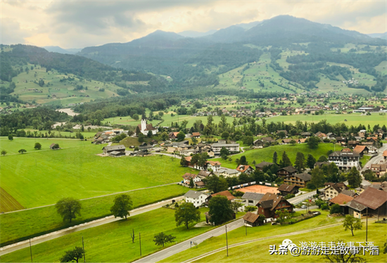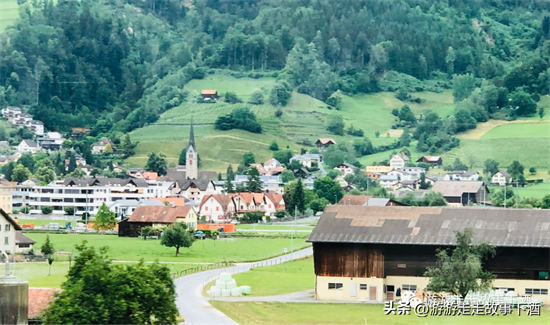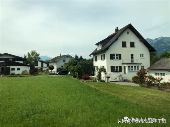 地势越来越高,山体葱郁,民居散布在山脚或者山腰之上,高低错落,远处的山尖上冰雪覆盖,共同组成一幅阿尔卑斯特有的画面。