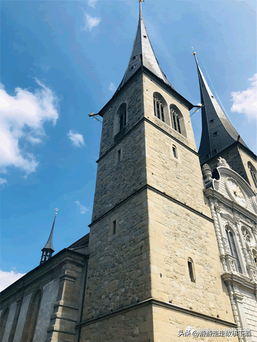 在卢塞恩的市中心,天鹅湖的北岸,竖立着一座双塔结构的教堂,那便是卢塞恩最重要的霍夫教堂,全称为“圣莱奥德伽尔教堂”,被称为“天使之光”。