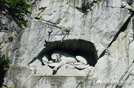 这是1821年丹麦雕塑家的作品,是为纪念1792年8月10日死难的786名瑞士雇佣兵。为保护巴黎路易十六家族的安全,他们全部战死。