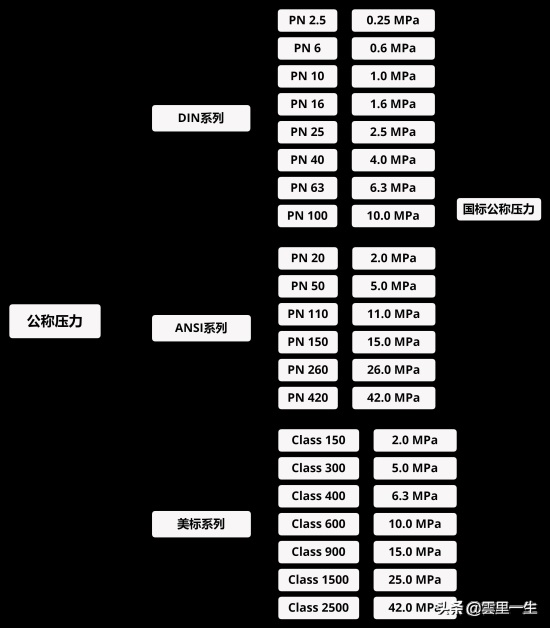 说回来,我们国标阀门中公称压力有两个系列,DIN系列、ANSI系列,以及公称压力中我们常用的美标(Class)系列包含的具体有哪些,见下面的视频:
