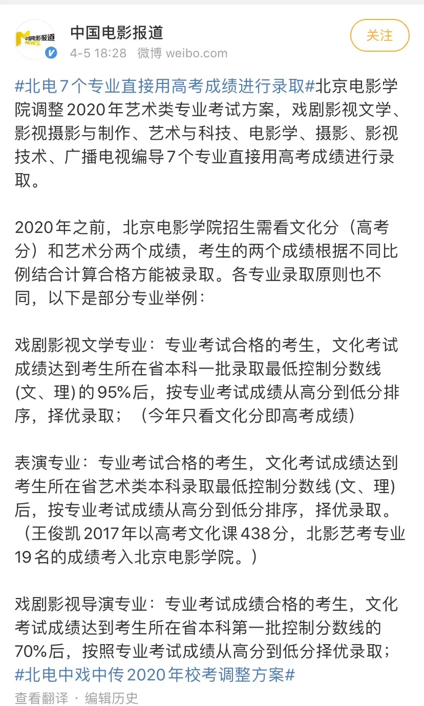 方案已经发布,按照目前的情况,很可能会有相当一部分没有报名北电中戏的高分学生报考北电中戏。