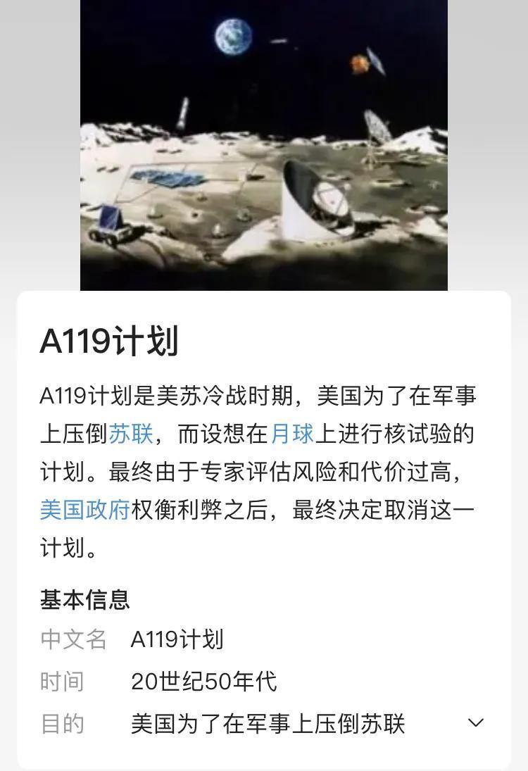A119炸月计划就是这样一个疯狂的不计后果的计划。科技的发展有时候会让人类忘乎所以。当时美苏两个超级大国为了争夺霸权不择手段,很多科学家都卷入其中,他们的研究没有给人类带来和平反而险些把人类置于毁灭的边缘。A119炸药计划就是在这样的背景下诞生的。
