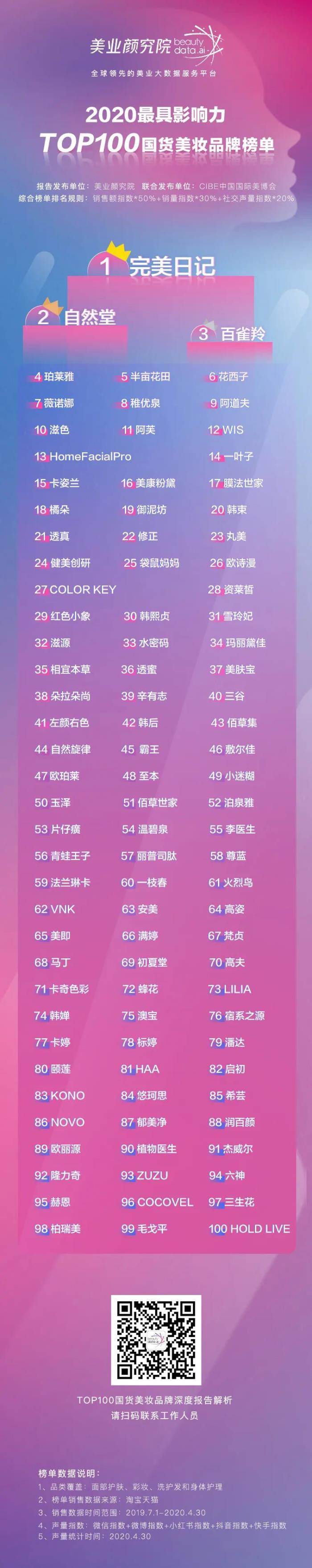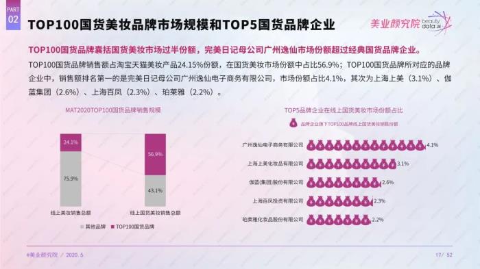 TOP 100国货品牌囊括,国货美妆市场过半份额