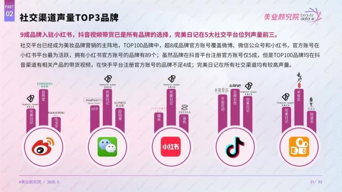 9成品牌入驻小红书,完美日记,在5大社交平台位列声量前三