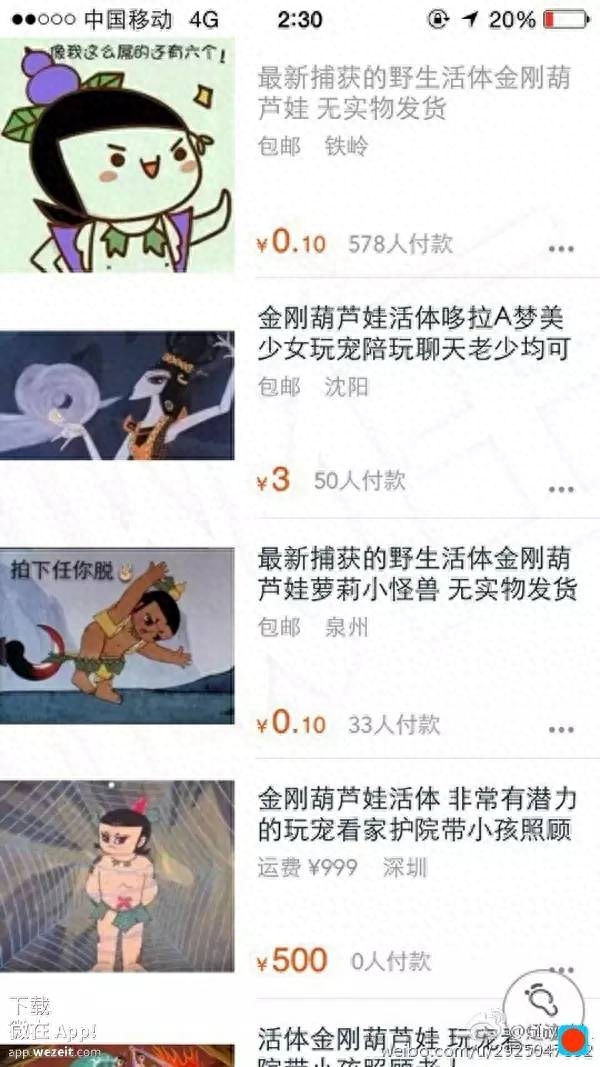 淘宝上真有卖“野生活体金刚葫芦娃”!