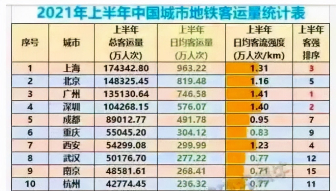 本想低调,但实力不允许,2021年上半年中国大陆城市地铁客运量排名,广州强度位列第一,可见承载不仅大且又强