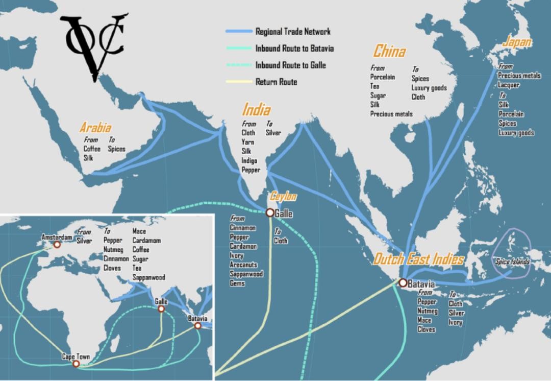 ◇ 图为荷兰东印度公司在亚洲的贸易网络