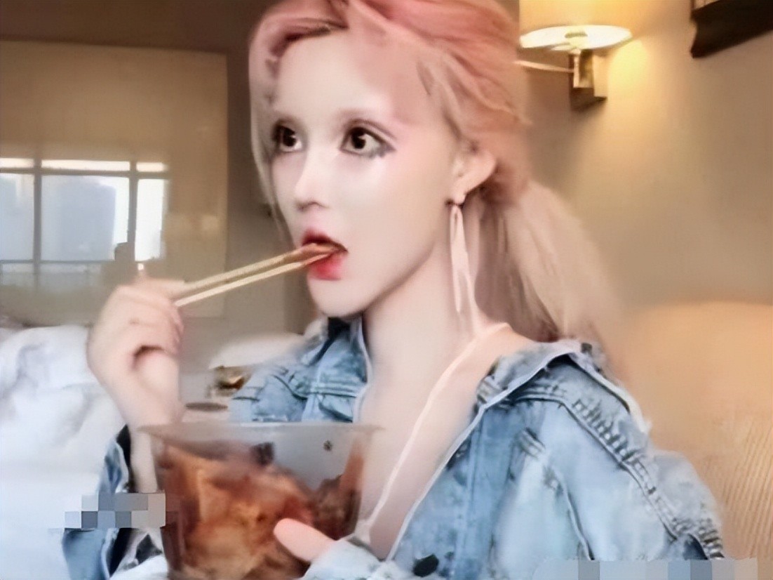 因为整容手术的关系,迪丽拉的嘴巴变得超级小,连吃个小丸子都费劲。