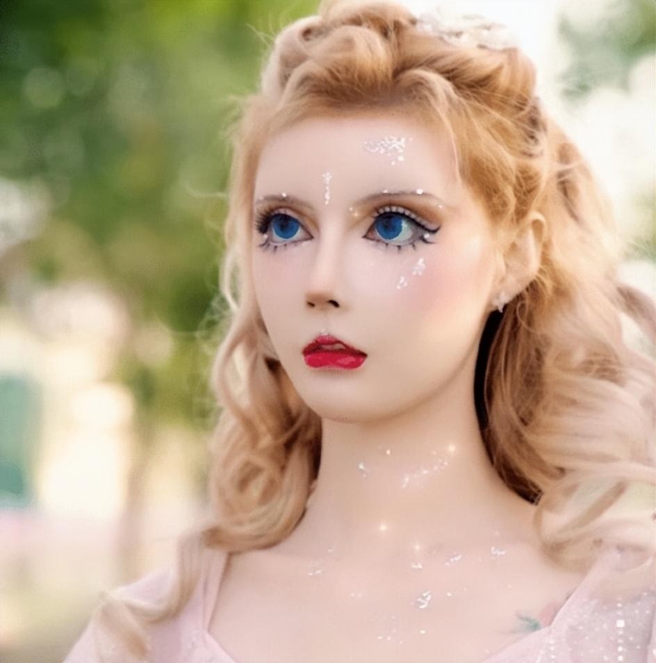 金发碧眼瓜子脸,大眼睛小巧的鼻子,樱桃小嘴活脱脱就是个真人版芭比娃娃!