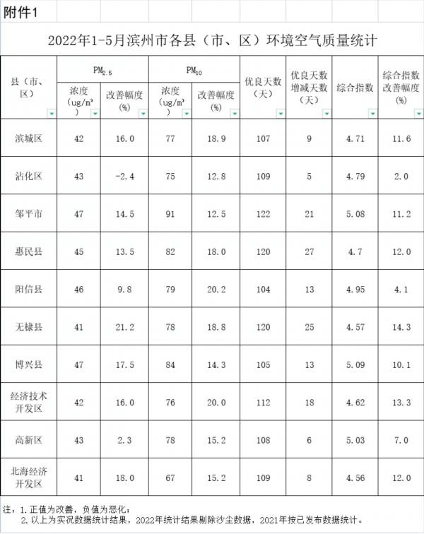 最新通报!滨州市1-5月空气质量来了