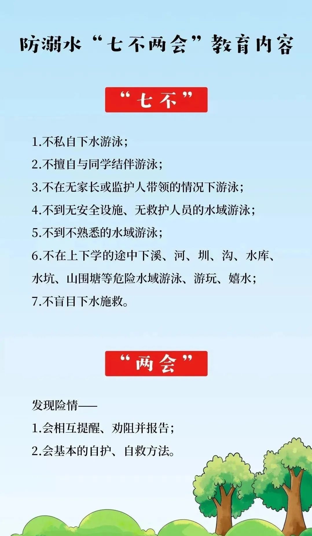 什么是防溺水“七不两会”?