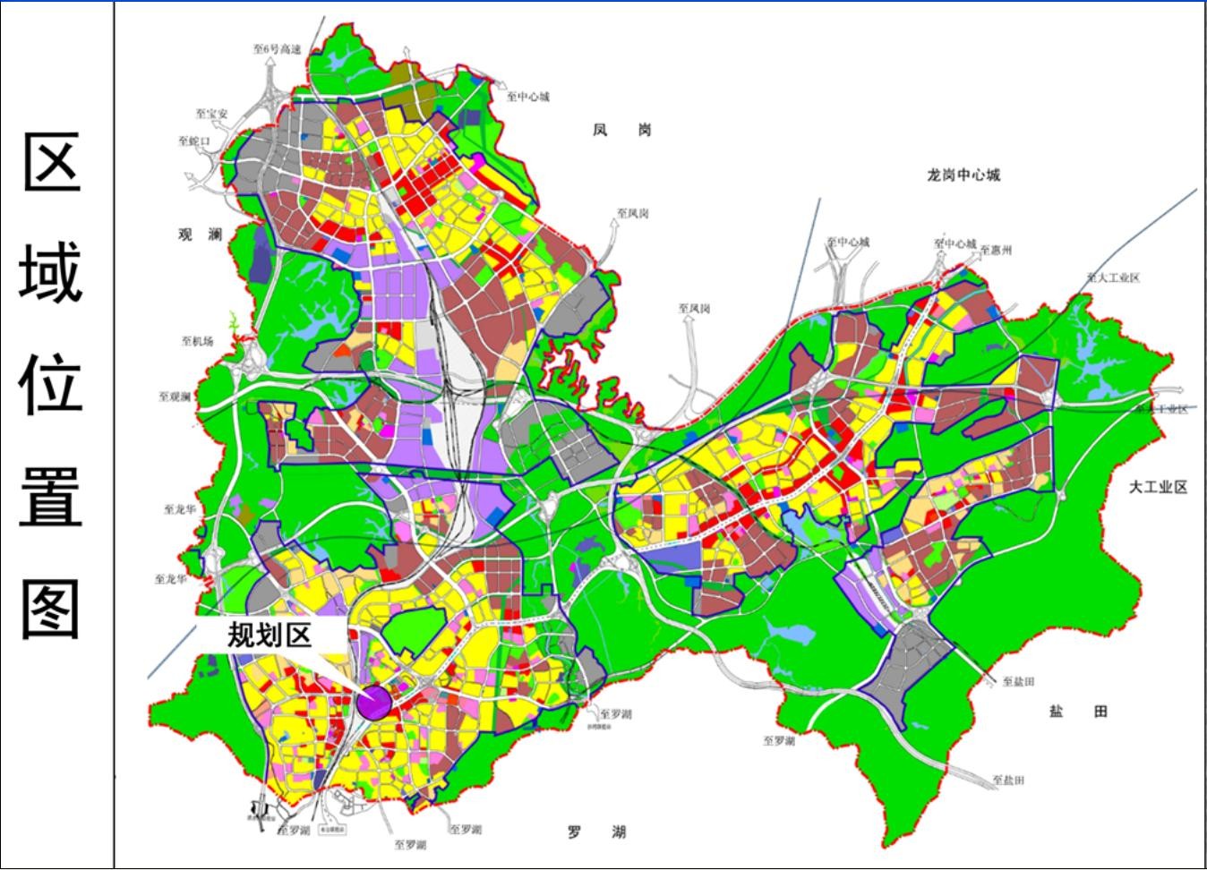 布吉新城:总面积10.88平方公里,定位为枢纽活力新城、城市渐进式修复的示范城区。以发展大芬油画、文博宫两大文化核心,承接都市核心区的商业、商务、文化等市级中心职能,通过保留一定规模制造业产业空间,重点发展商贸服务、文化创意、创意生活产业。紧邻罗湖-福田核心区和坂田创新中心,坐拥深圳东站综合交通枢纽,汇聚已运营的轨道3、5号线、在建的14号线、规划的17号、25号5条城市轨道及1条广深铁路,发展潜力巨大。清平高速、龙岗大道、布龙路等多条高等级公路穿境而过,交通区位突显。作为商贸重镇,规划产业用地41.20公顷,规划产业用房149.96万平方米。