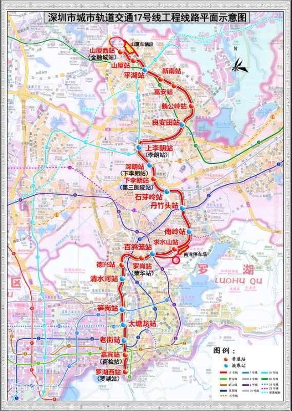 深圳地铁17号环线,联系罗湖中心区与龙岗平湖、布吉片区的轨道线路,线路起于罗湖火车站,经老街、笋岗、清水河、布吉、南湾、大芬、丹竹头、李朗、平湖等地区,终点设在平湖中心。线路全长约28.7公里。