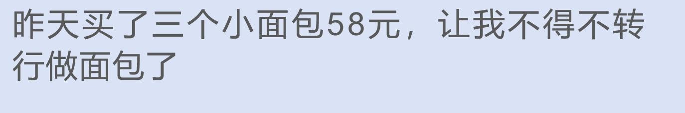 三个小面包就要 58 元,难怪你都动了转行做面包的念头呢。